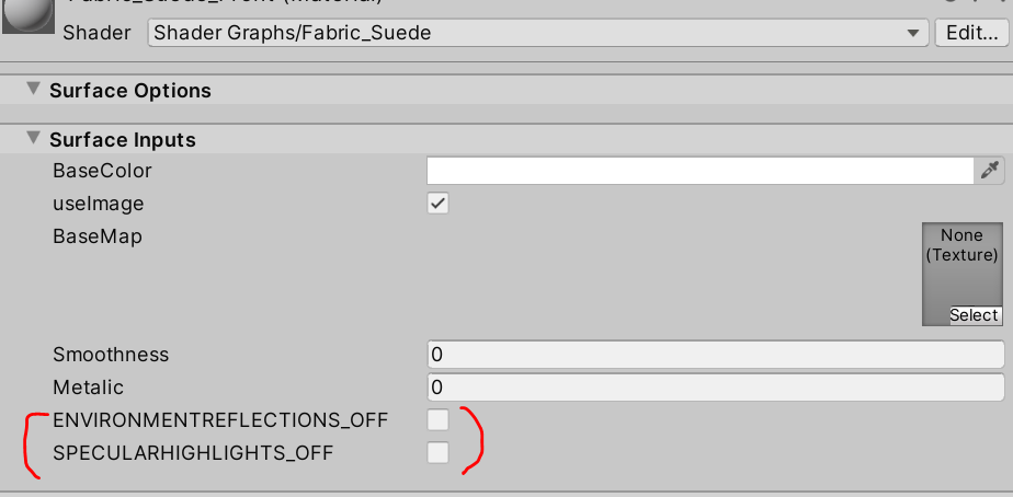 유니티 커스텀 쉐이더를 사용하면 Environment Reflections 값과 Specular Highlights 값을 조절하는 옵션이 없다.